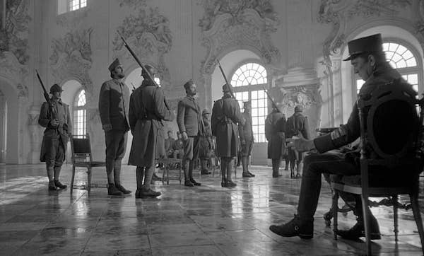 In Paths of Glory, the French trenches are realistically grim and full of reproduced sights and sounds that soldiers would have likely witnessed and heard — as one can see from the most famous scene of the film in which Colonel Dax trudges through the mud, flanked by his men with shells exploding on all sides. While Kubrick presents a fraction of what was actually in the trenches with its sound and fury, what makes Paths of Glory stand out as an anti-war film is his use of dialogue and music to mock the absurdities of the war and its officer class, and show how that class can change the future of the lower classes’ human condition without any real consequence.