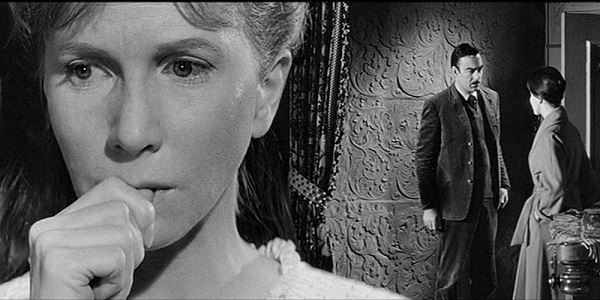 This is not the kind of horror movie that picks off its characters one by one; it’s more interested in turning the screws on living victims, with the deaths of the previous inhabitants presented right at the beginning mostly to set the stage for what comes later. We know how dangerous the house is, but Nell and Theodora don’t, while Dr. Markway naively insists that ghosts are benign, harmless entities incapable of doing real harm to the living. The creepy housekeeper, played with relish by Rosalie Crutchley, warns them early on, but even Nell laughs at her. Eventually, they’ll understand why Mrs. Dudley never stays in the house after dark. “In the night,” she says in parting, “In the dark.” Her final eerie grin suggests that even her daytime hours in the house have wrought a strange effect on the housekeeper’s mind. Those staying overnight will feel the full weight of Hill House’s malevolent power.