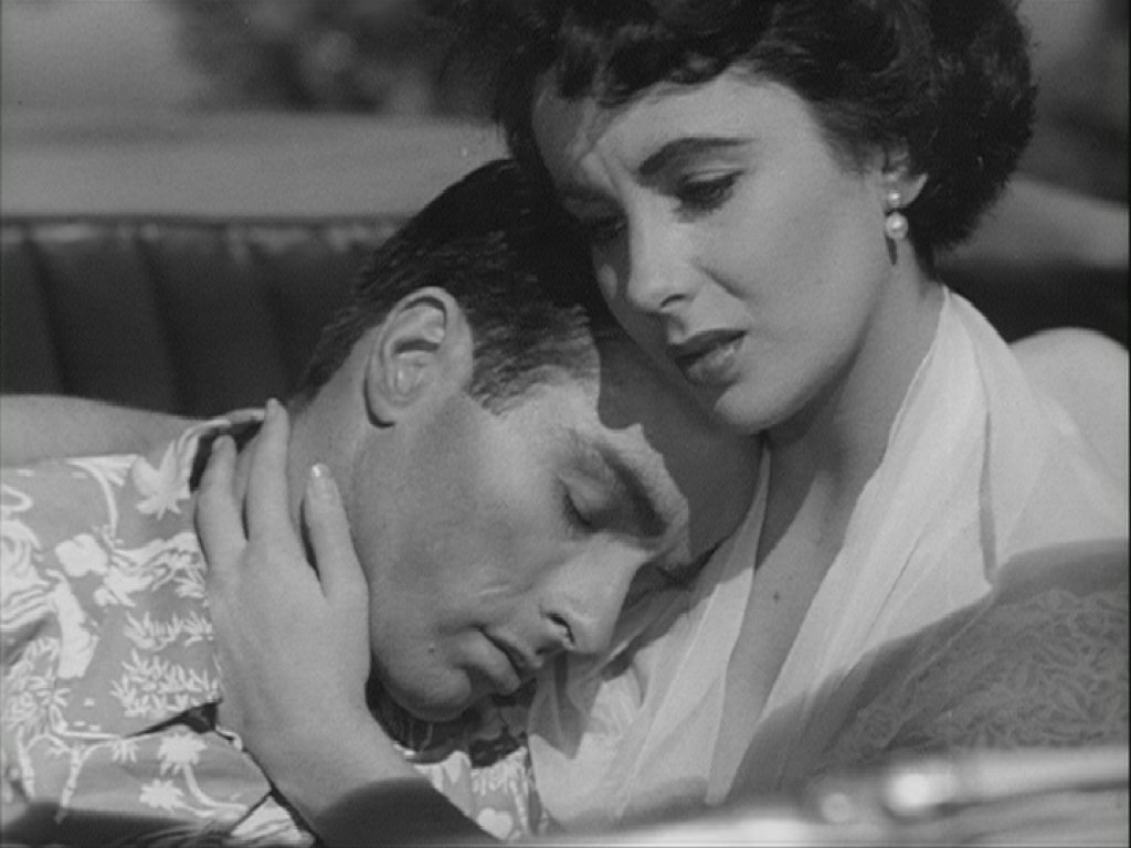 Montgomery Clift getting sensitive with Elizabeth Taylor in A Place in the Sun (1951, George Stevens director)