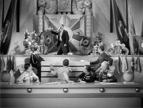 Groucho Marx mixing two of my favorite things: political satire and musicals in Duck Soup (1933, Leo McCarey director)