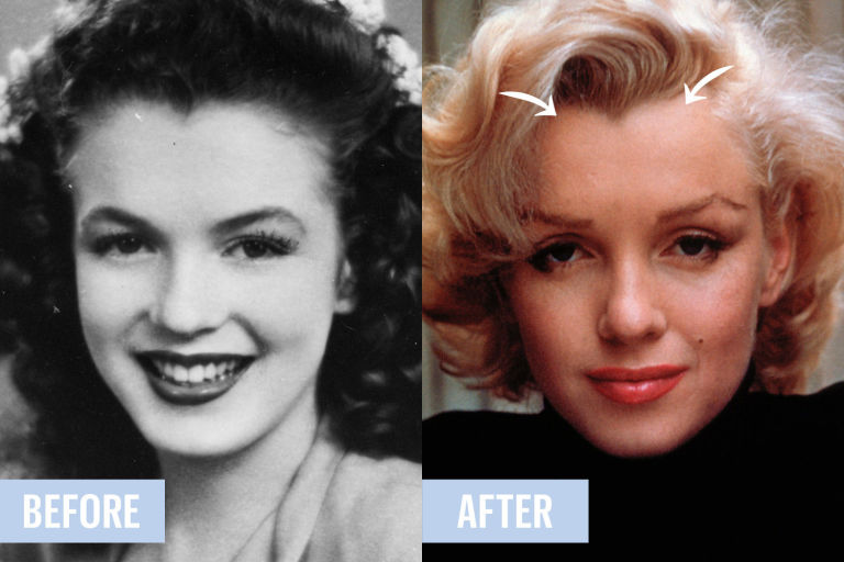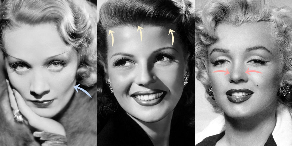 Marilyn Monroe was also notorious for undergoing electrolysis, removing her widow's peak to change her face shape. The less painful, modern day equivalent? Stars (the Kardashians in particular) are making their hairlines look more bold and precise by filling them in with eyeshadow.
