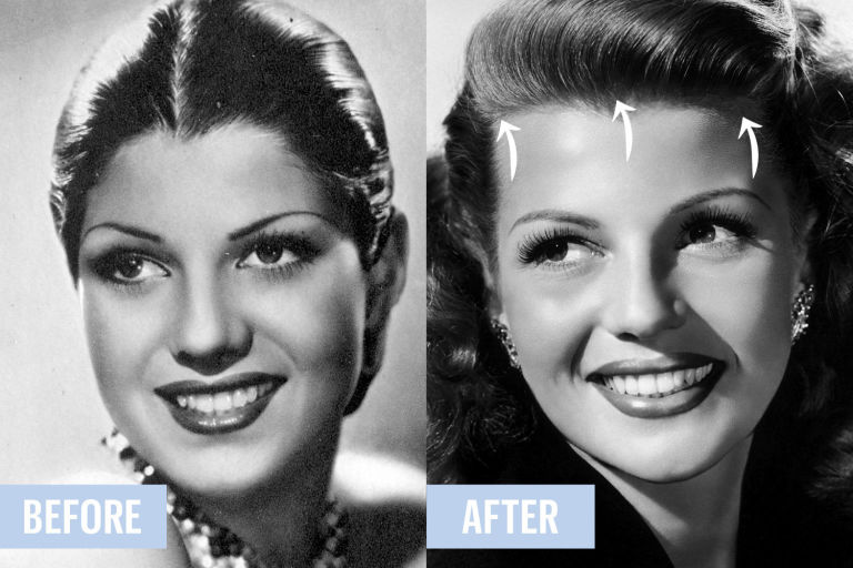 To reshape it, Hayworth underwent a year's worth of electrolysis, which consisted of using a thin metal probe to "shock" the follicle and permanently remove the hair. In the end, her hairline was an inch higher and her new look, for better or for worse, helped launch her career.