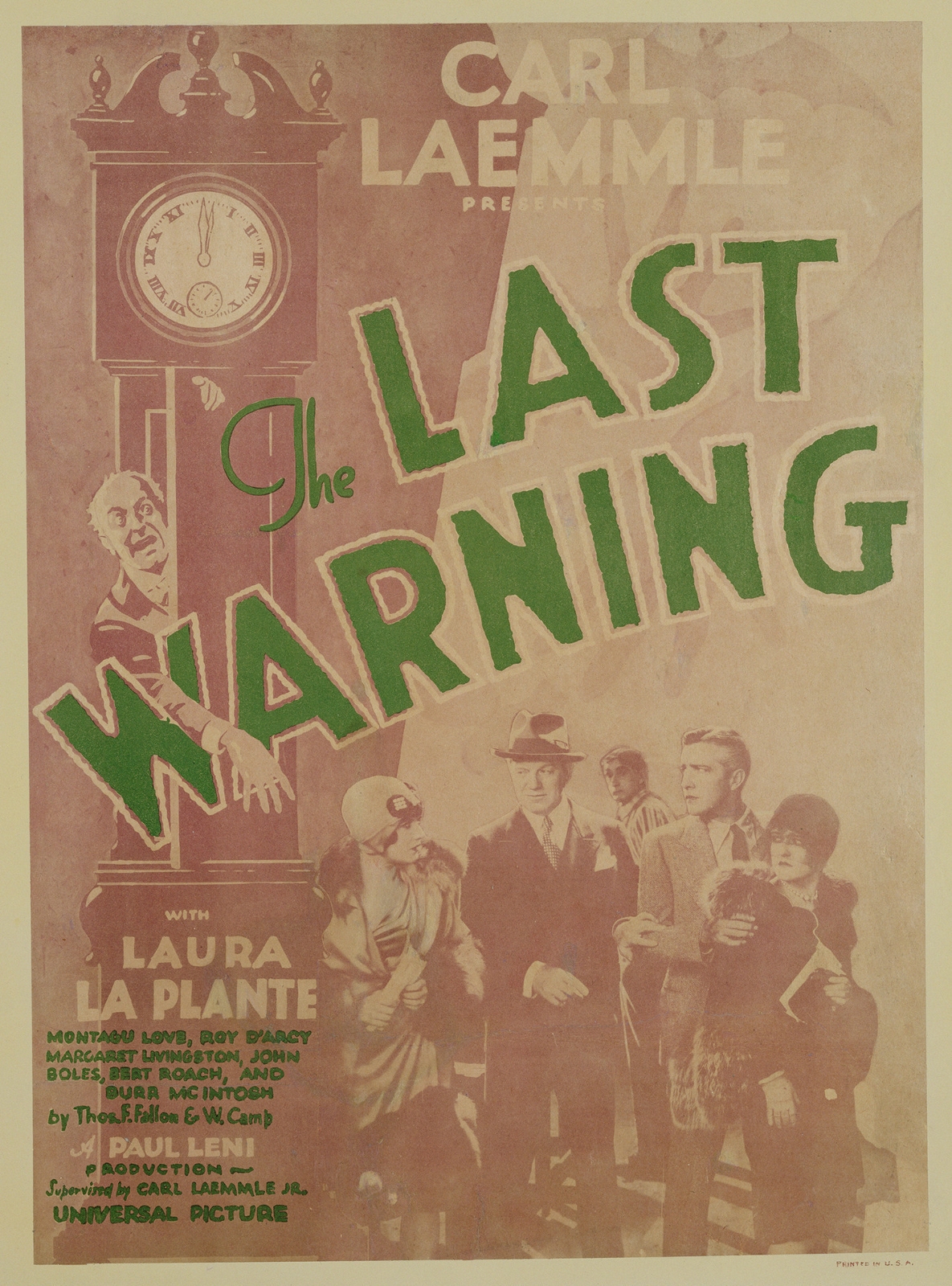 "The Last Warning is significant in Universal's history as it was Paul Leni's last film and a key role for Universal's leading lady of the 1920s, Laura La Plante," said Michael Daruty, Senior Vice President, NBCUniversal Global Media Operations. "Through the silent film initiative, our two goals are to preserve the films for the future and share them with audiences."