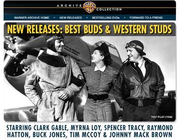 TEST PILOT (1938) The terrific trio of Clark Gable, Myrna Loy and Spencer Tracy topline this high-flying drama about the men who dare the sky to destroy them and the people that love them. Gable plays daredevil test pilot Jim Lane who puts Drake's (Lionel Barrymore) planes through their paces while best pal Gunner (Tracy) is the mechanic that keeps them bolted together. After crashing down out of the sky on a Kansas farm, Jim meets a farm girl (Loy) who turns the duo into a trio. But Jim Lane can't change his profligate ways and now it will take two to save him. Test Pilot makes its DVD debut looking mighty fine as befits a film that has such soaring performances from its leading players.